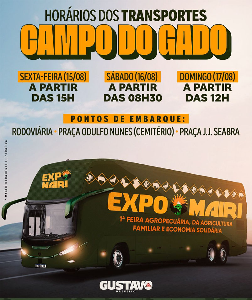 A Expo Mairi promete reunir produtores rurais, criadores de animais, empreendedores e visitantes de toda a região, movimentando a economia local e fortalecendo a identidade do município. Com o transporte gratuito, a expectativa é de que ainda mais pessoas participem e aproveitem a programação.