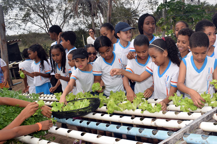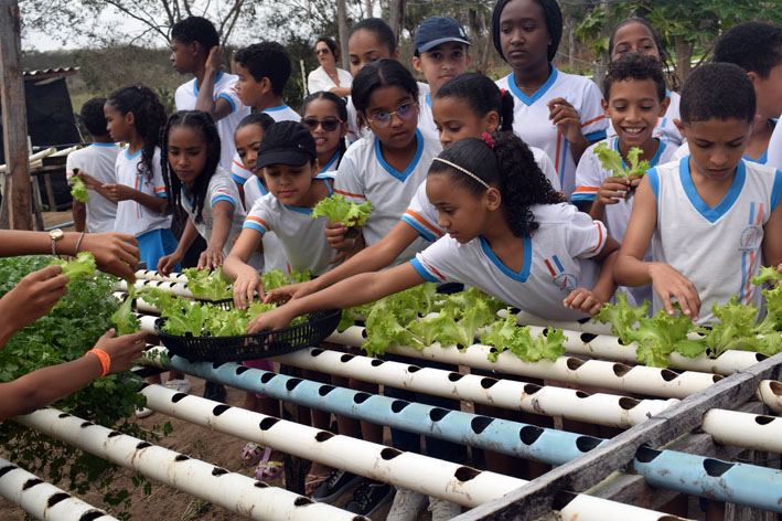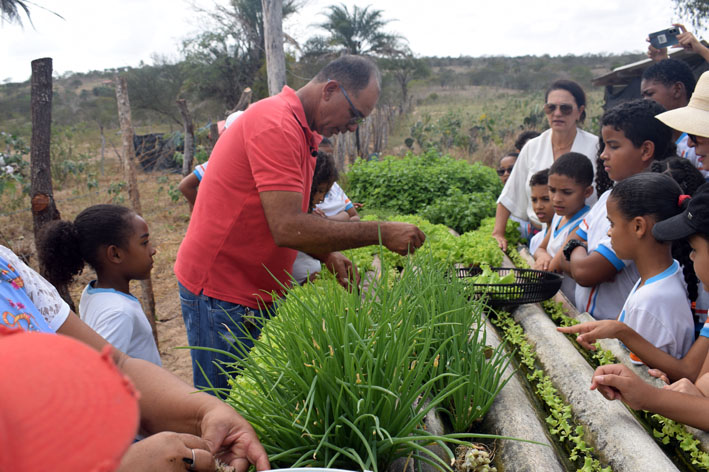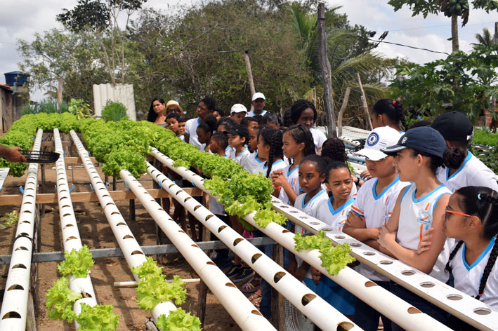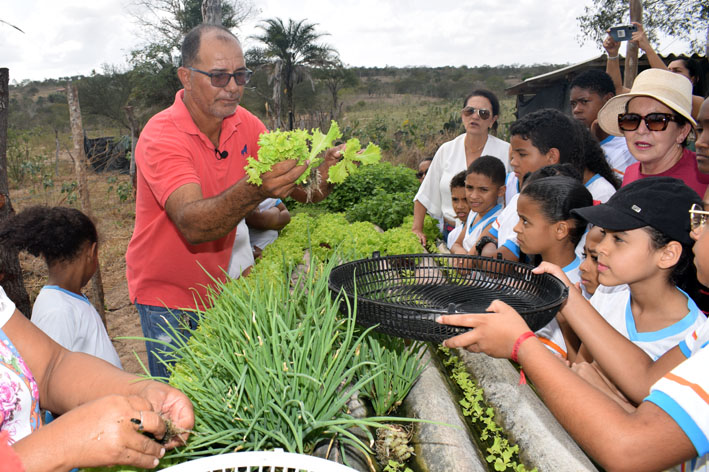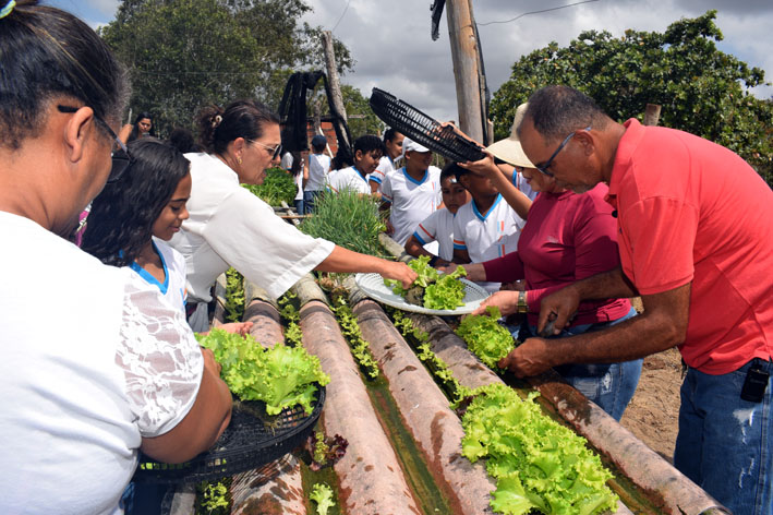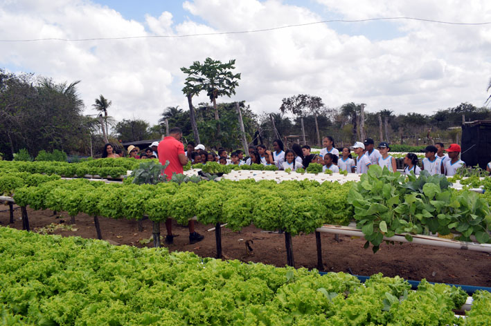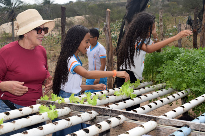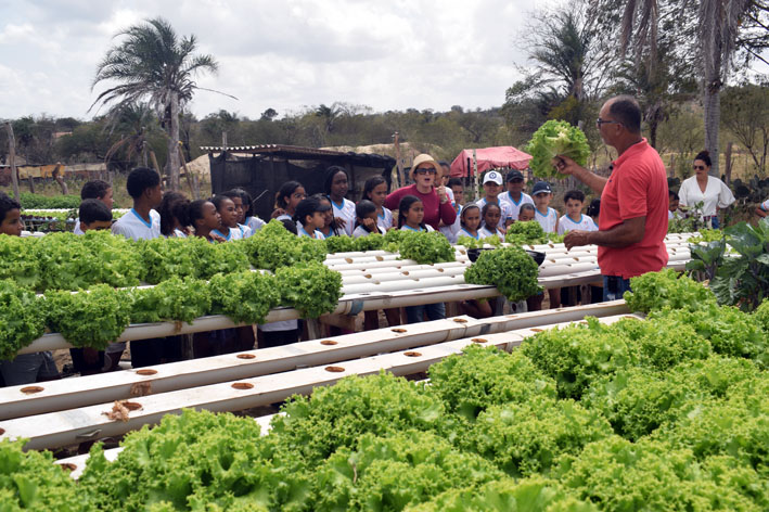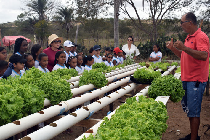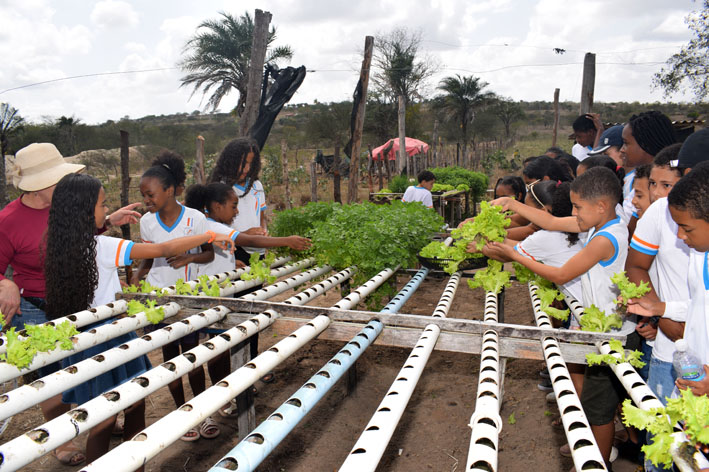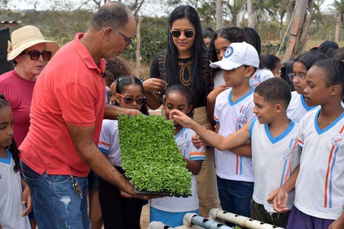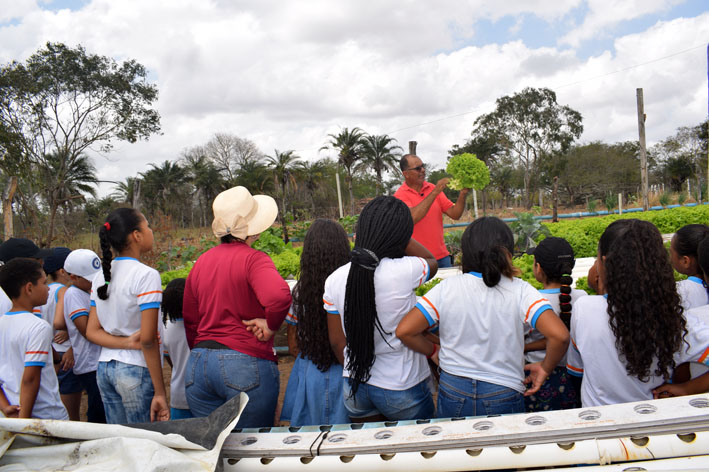 Professora Raquel leva seus alunos para conhecer horta hidropônica em Baixa Grande