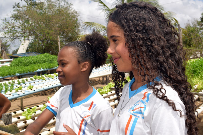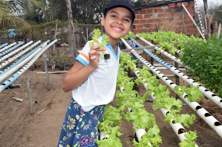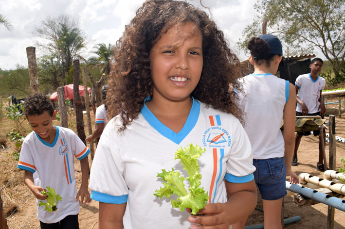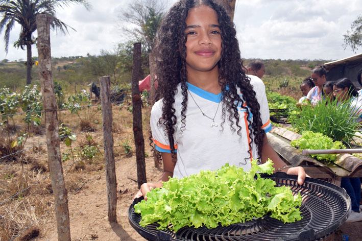 Quando perguntada sobre a importância da alface na alimentação, a aluna Nataline Nepomuceno demonstrou facilidade ao explicar as vitaminas presentes na hortaliça e suas utilidades tanto para a alimentação humana quanto para a alimentação animal.