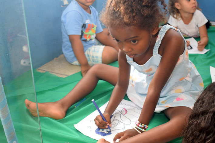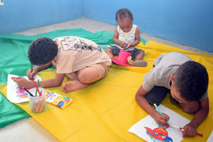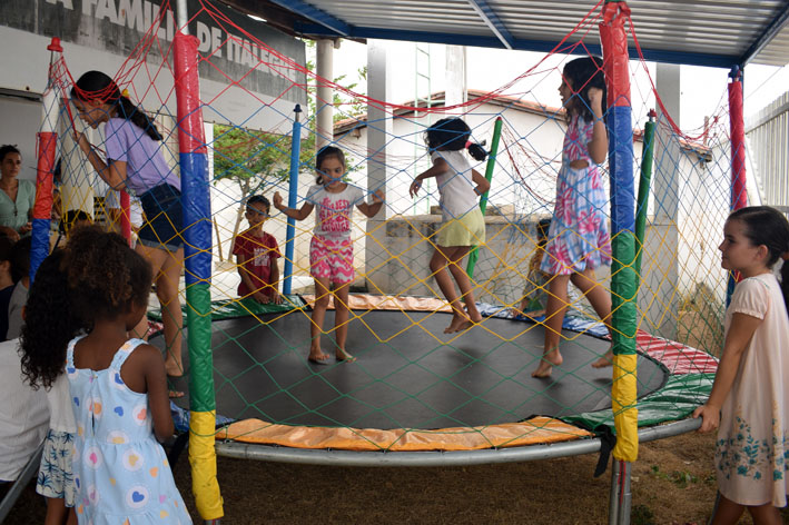 Um pula-pula foi instalado em frente à unidade, onde as crianças se divertiram à vontade. Outra área foi especialmente montada para os pequenos, com atividades de pintura em desenhos animados.