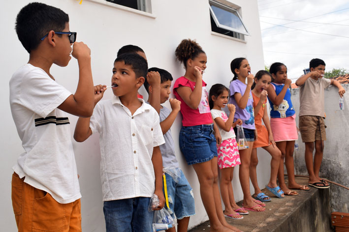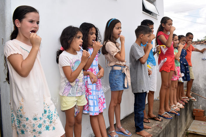 O cirurgião-dentista Igor Batista realizou uma atividade de escovação supervisionada, destacando a importância da saúde bucal desde a infância. Segundo ele, é nessa fase que se pode prevenir o surgimento das cáries com mais eficiência.