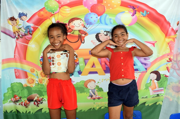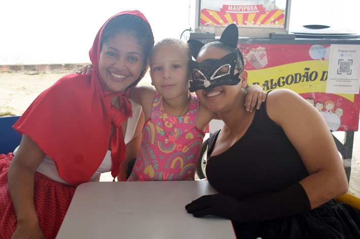 As estudantes de enfermagem Letícia e Erlandia também contribuíram para o sucesso do evento. Fantasiadas de personagens infantis, elas ajudaram a criar um ambiente ainda mais animado e acolhedor para as crianças.
