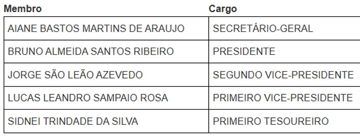 A nova composição do diretório municipal conta com nomes ligados à atual gestão: Aiane Martins, Lucas Leandro, Sidnei Trindade e Jorge São Leão.