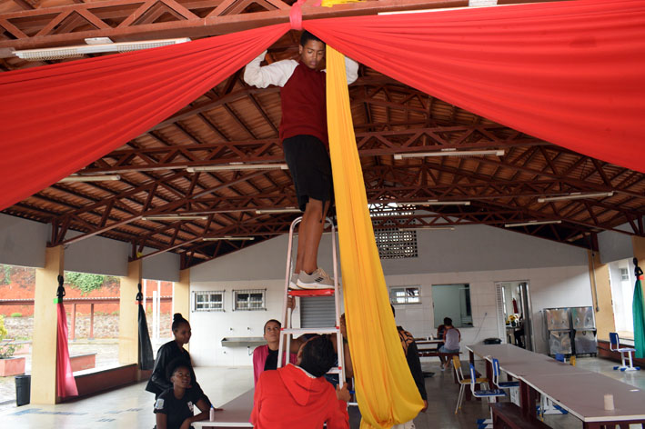 Entre as atividades oferecidas está a oficina de música, coordenada pela professora Alana Estrela, que ministra aulas às terças e quartas-feiras. Os alunos têm aprendido noções de coral, afinação vocal, postura e conceitos básicos de violão.