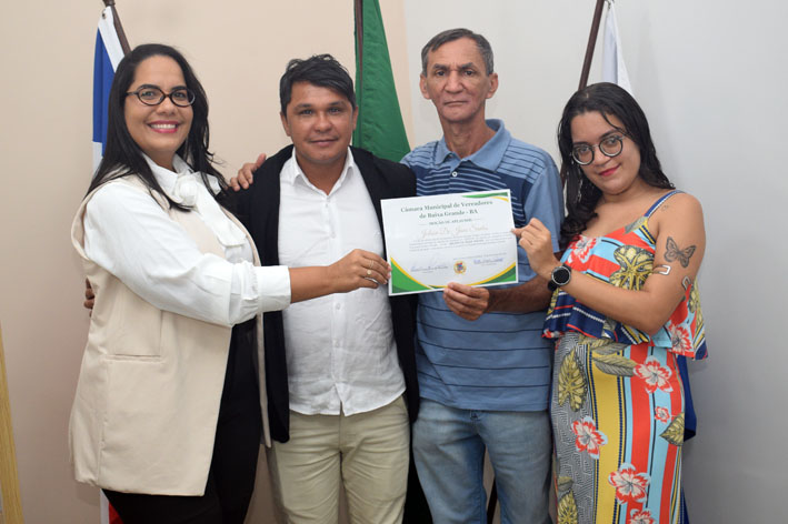 A Câmara de Vereadores de Baixa Grande entregou, na sessão da última sexta-feira (14), uma Moção de Aplauso ao servidor Joilson de Jesus Santos, conhecido como Joilson do Hospital. A homenagem foi proposta pela vereadora Anatália Borges (Naty), que destacou o comprometimento e a trajetória do servidor no Hospital Miltom Pamponet Ribeiro.