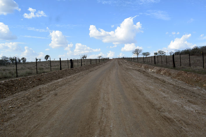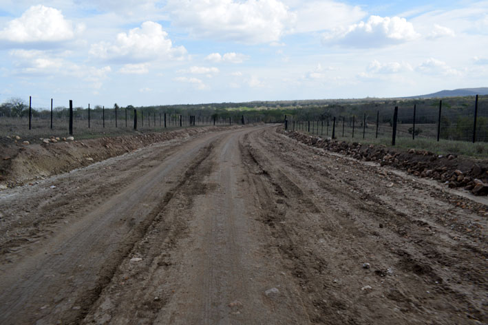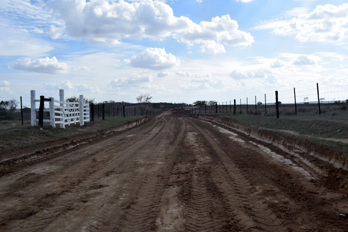 Na primeira etapa, foi utilizado um trator de esteira para alargar a via. Nesta segunda etapa, está sendo espalhada uma grossa camada de cascalho.
