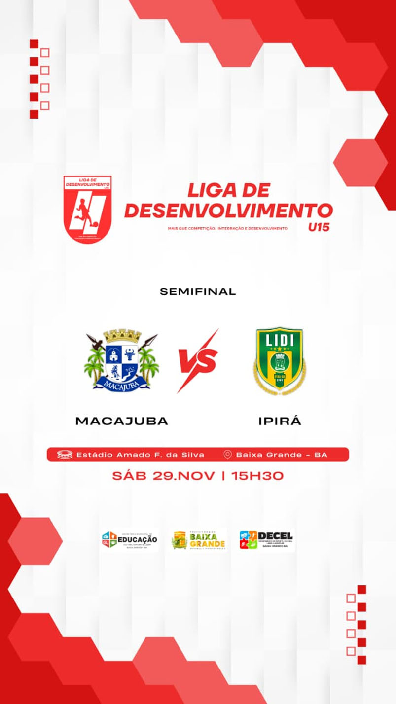Já às 15h30, entram em campo Macajuba x Ipirá, em busca da segunda vaga na grande final.
