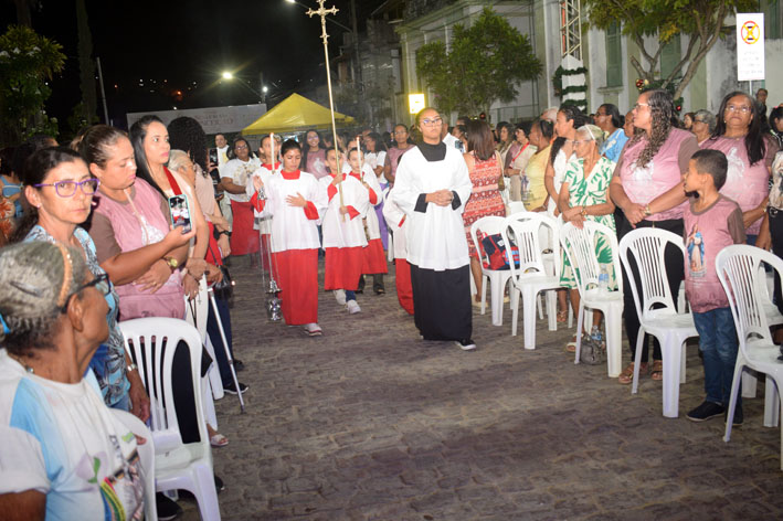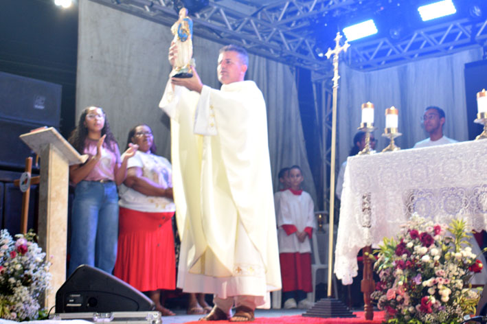A abertura da festa contou com uma carreata pelas principais ruas da cidade, seguida de uma celebração realizada no palco montado ao lado da Igreja Matriz. O tema da primeira noite, “O encontro que reacende a chama da esperança”, foi conduzido pelo padre Carlos Marçal, que refletiu sobre o encontro de Maria com Jesus no templo — momento que, segundo ele, reacendeu a alegria no coração materno.