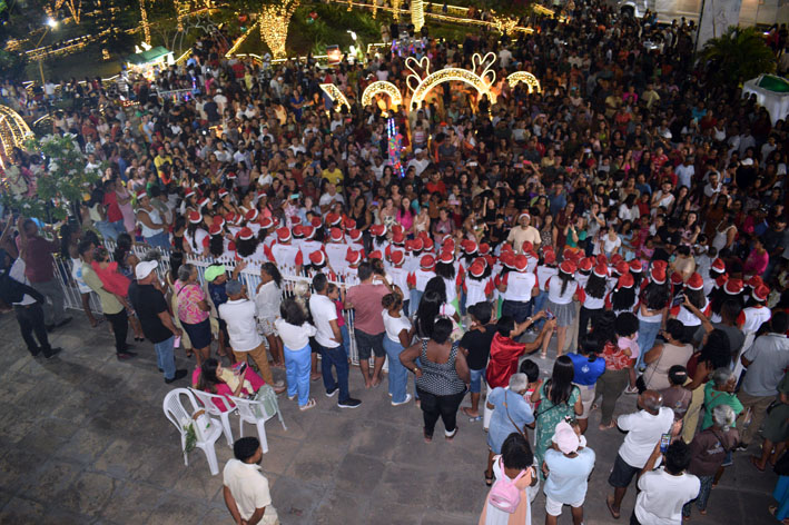 A cerimônia de abertura contou ainda com apresentações de corais e encenações natalinas realizadas por estudantes das escolas municipais.