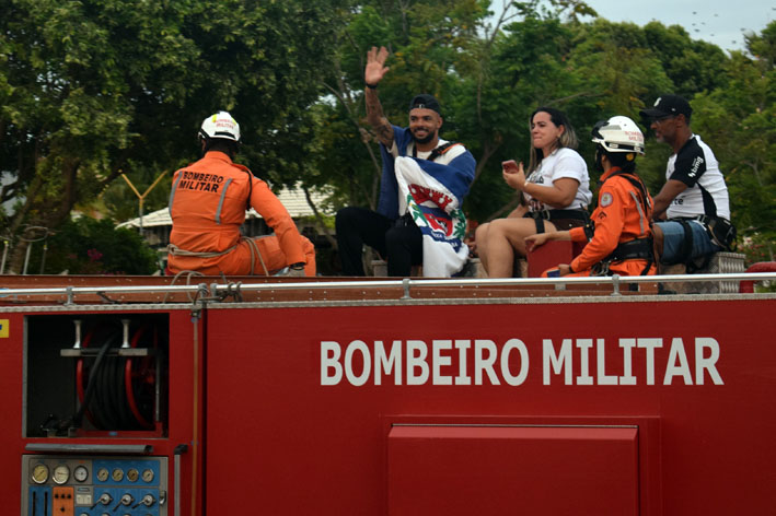 Em período de férias, o atleta chegou a Baixa Grande no fim da tarde, sendo recepcionado por familiares, amigos e centenas de munícipes que se concentraram na entrada da cidade para prestar homenagem ao conterrâneo.