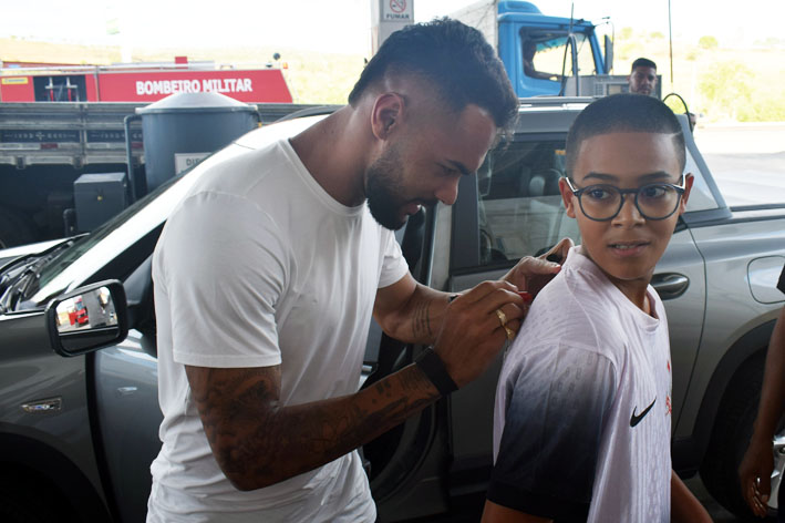 Em período de férias, o atleta chegou a Baixa Grande no fim da tarde, sendo recepcionado por familiares, amigos e centenas de munícipes que se concentraram na entrada da cidade para prestar homenagem ao conterrâneo.