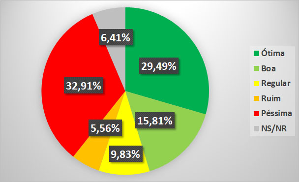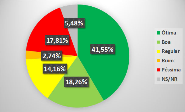 Na zona urbana, 45,30% avaliaram a gestão como boa ou ótima, enquanto 38,46% consideraram ruim ou péssima. Para 9,83%, a gestão é regular, e 6,41% não souberam ou preferiram não responder.