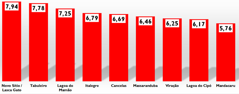 O povoado com maior índice de aprovação foi Novo Sítio / Lasca Gato, com média 7,94. Já a menor média foi registrada em Mandacaru, com 5,76.