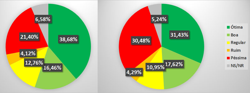 Na zona urbana, 45,30% avaliaram a gestão como boa ou ótima, enquanto 38,46% consideraram ruim ou péssima. Para 9,83%, a gestão é regular, e 6,41% não souberam ou preferiram não responder.