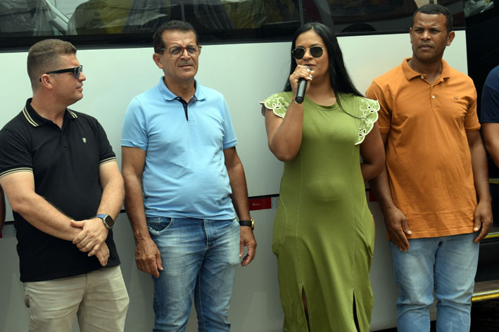 Ao lado do prefeito Canário, do vice-prefeito Adnaldo e de demais autoridades, a secretária municipal de Educação, Aiane, destacou que o dia 31 de dezembro entra para a história da Educação e da Saúde do município. Ela ressaltou que parte dos veículos foi adquirida por meio de parcerias com os governos estadual e federal, mas enfatizou que a maioria das aquisições foi realizada com recursos próprios do município, lembrando ainda as dificuldades enfrentadas nos primeiros meses da gestão.