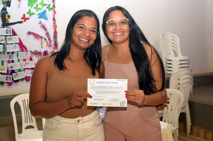 No momento da entrega dos certificados, foi formado um corredor com todos os participantes. Ao ser chamado, cada integrante atravessava o espaço desfilando, em um gesto simbólico de reconhecimento e valorização.