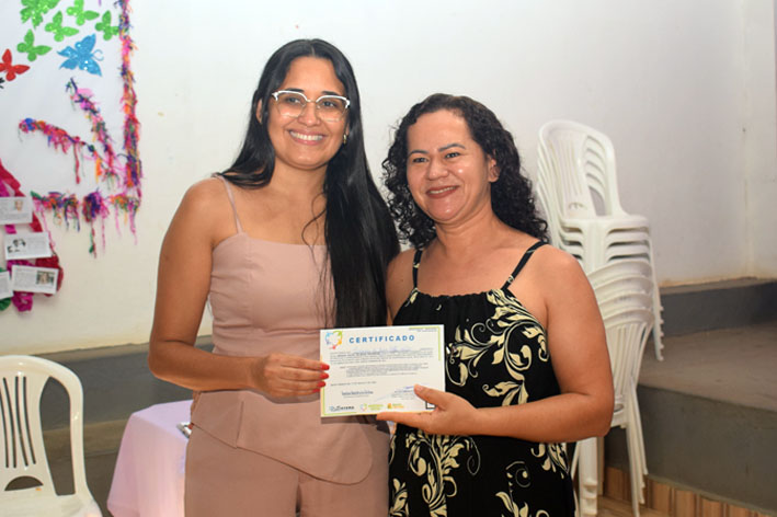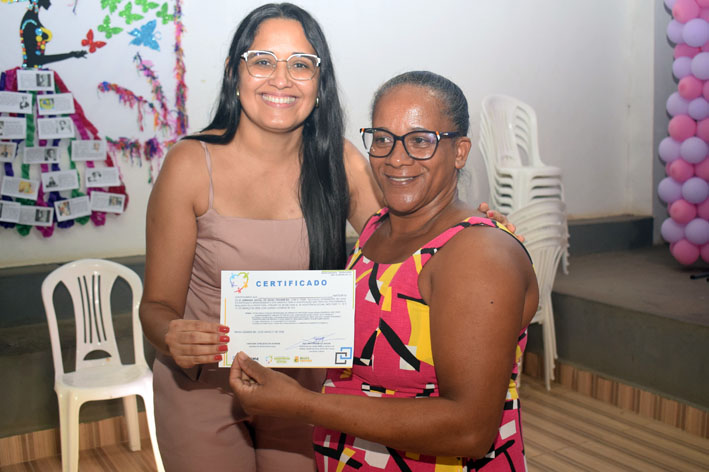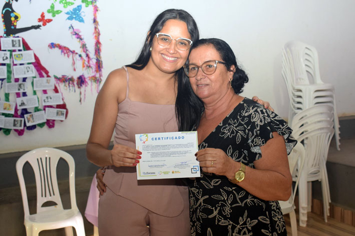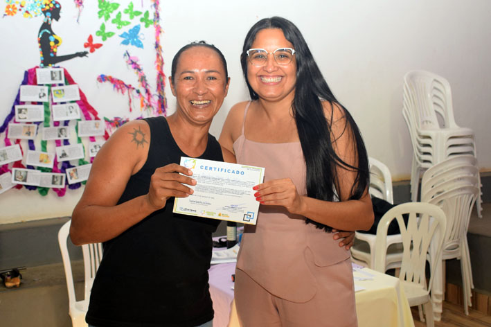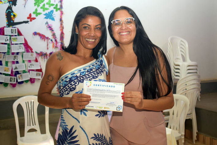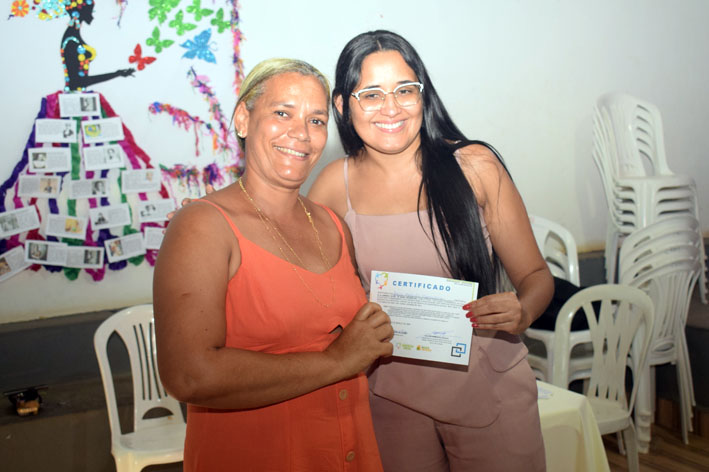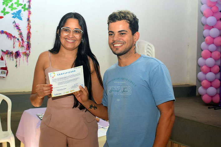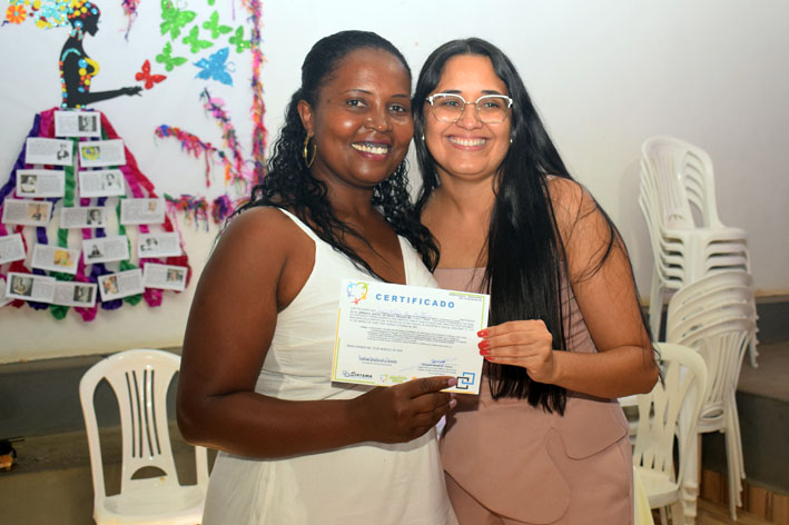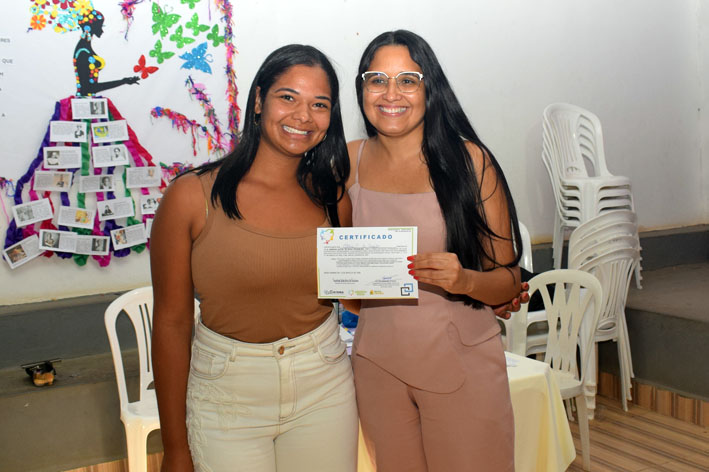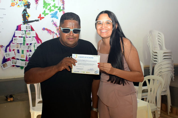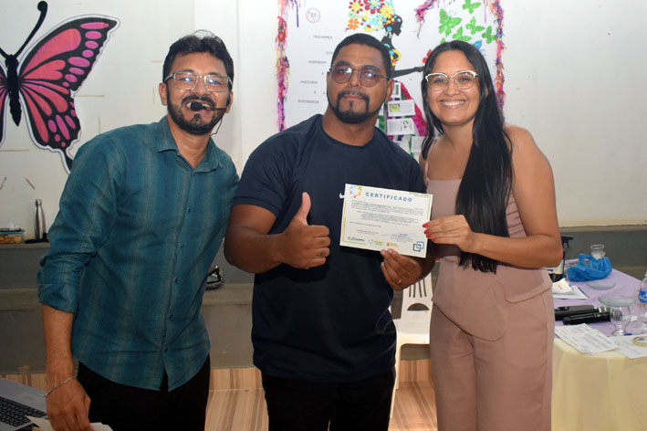 No momento da entrega dos certificados, foi formado um corredor com todos os participantes. Ao ser chamado, cada integrante atravessava o espaço desfilando, em um gesto simbólico de reconhecimento e valorização.