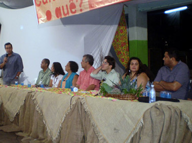 Compuseram a mesa de abertura Heiton Fernandes, diretor de Cultura Popular da Secretaria de Cultura do Estado da Bahia (SECULT); Normelita Oliveira, presidente do Fórum de Dirigentes Municipais de Cultura; Izaias Júnior, representante territorial da SECULT na Bacia do Jacuípe; Maria Vanda Barreto, secretária municipal de Educação de Ipirá; Matheus Martins, articulador do CODES no território; Lúcia Pires, secretária do Conselho Municipal de Cultura de Ipirá; Tony Teófilo, assessor da deputada estadual Neuza Cadore; Alonso Oliveira, assessor do deputado Jurandir Oliveira; e Vandelson Gonçalves, coordenador do Grupo de Trabalho de Cultura no território.